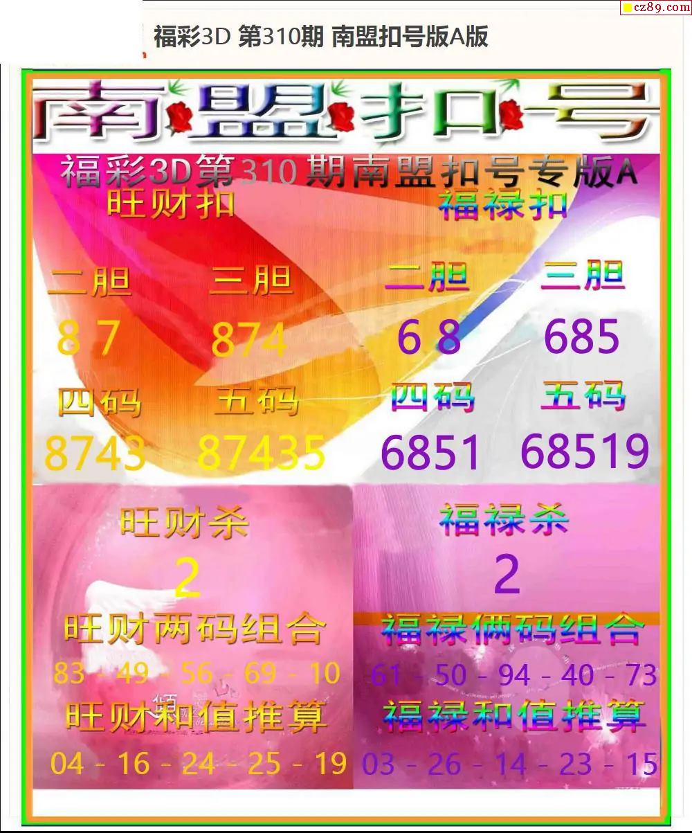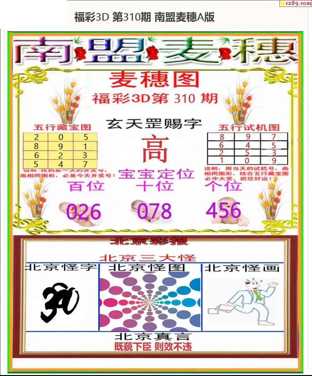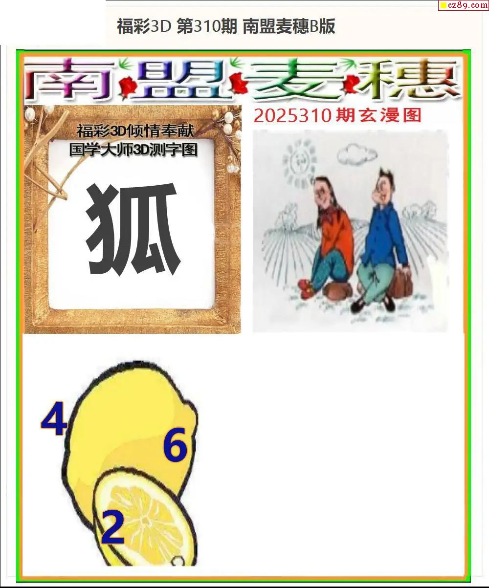 福彩3D2025310期南盟麦穗AB版+南盟扣号AB版